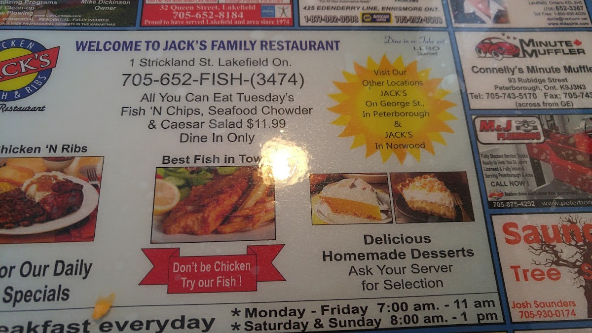 Welcome to Jack's Restaurant, a delightful culinary gem nestled in Lakefield, Ontario. This charming eatery is renowned for its robust and diverse menu that promises to satisfy every palate. Start your journey with their hearty Seafood Chowder or a tantalizing Loaded Chicken soup, perfect for warming the spirits on chilly days.